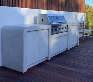 Elegant Concrete Benchtops: Custom-shaped to complement your outdoor aesthetic.