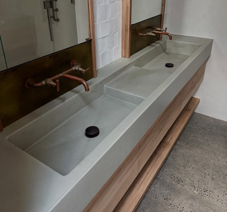 At Set In Steel, we meticulously craft custom polished concrete pieces to revolutionise bathroom designs. Our array of vanity benchtops, custom moulded integrated sinks, and a diverse range of basins offer endless possibilities in your chosen colour.